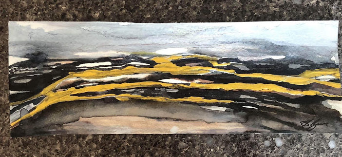 Watercolour, ink, on paper, 10 x 25cm